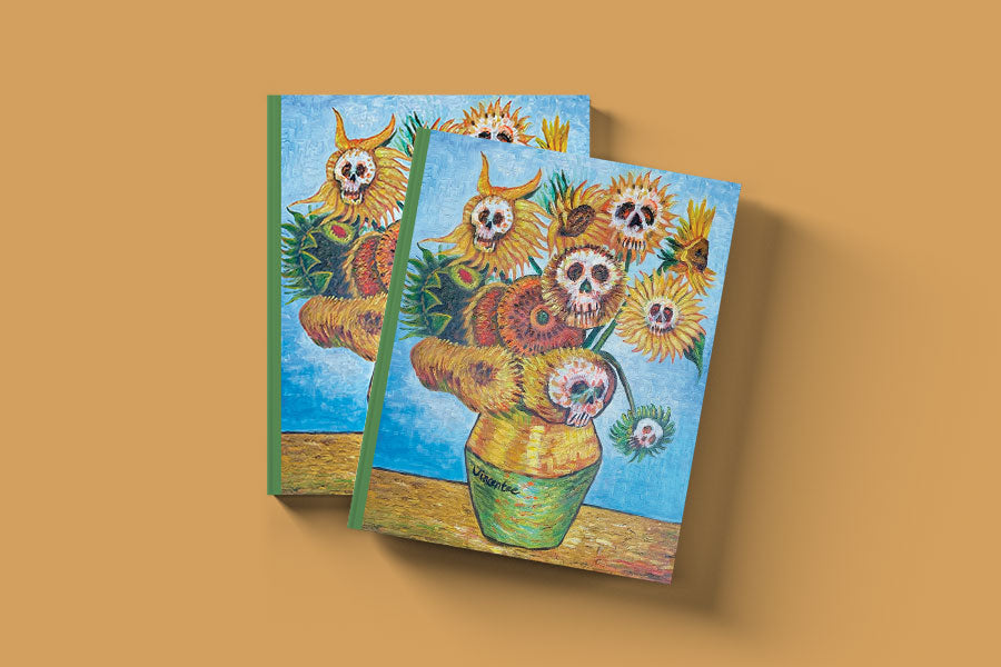 Sunflowers & Skulls is Tanya's super-fun take on van Gogh's Sunflowers. This is next-level cover art for your next composition notebook.