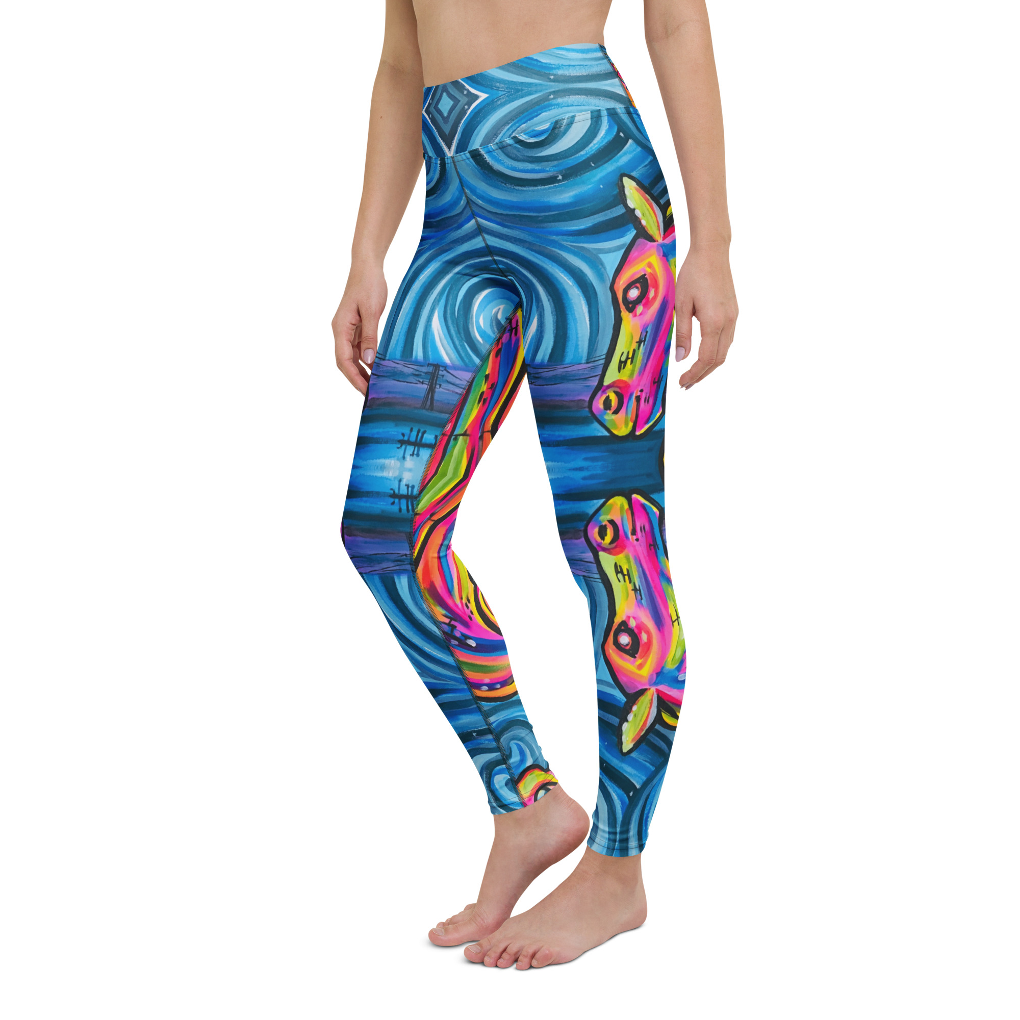 Artwork printed onto soft comfortable yoga leggings perfect for a night out or a workout.
